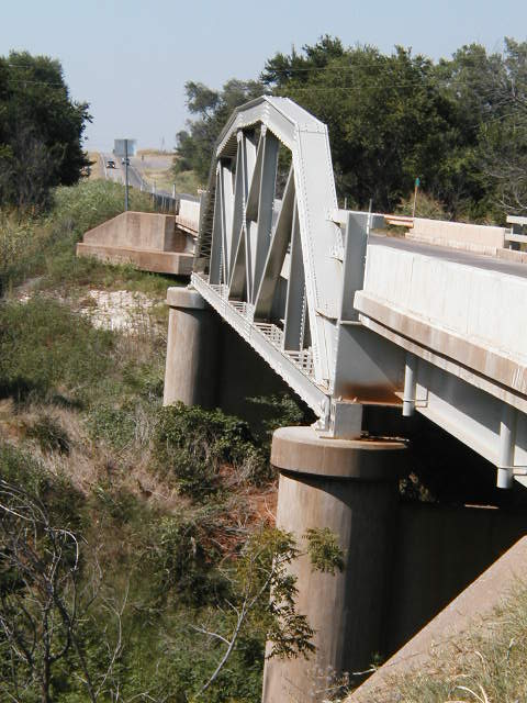 This state standard 100-foot Parker Pony truss with steel stringer approaches was built in 1937 by J. W. Hopper, and appears to have been recently repainted.