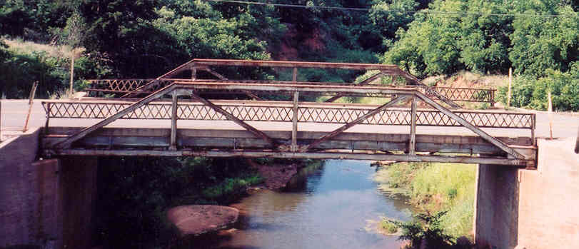This 70-foot long Pratt Pony truss was built in 1930 by L. S. Fisher for US Highway 66, and now sits adjacent to I-40.