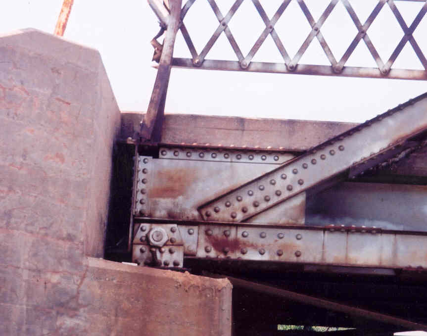 Above, a close-up of the bearing pin and end-post to lower-chord connection.