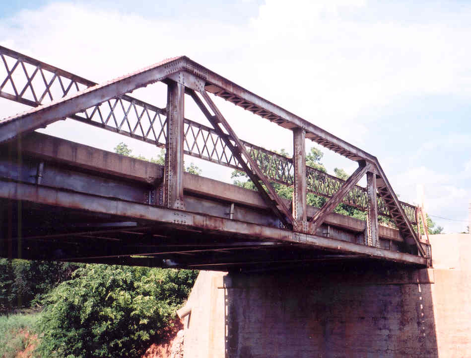 Above, a flat side view of the bridge. The proportions and design of this bridge make it a Pratt, and not a Warren.