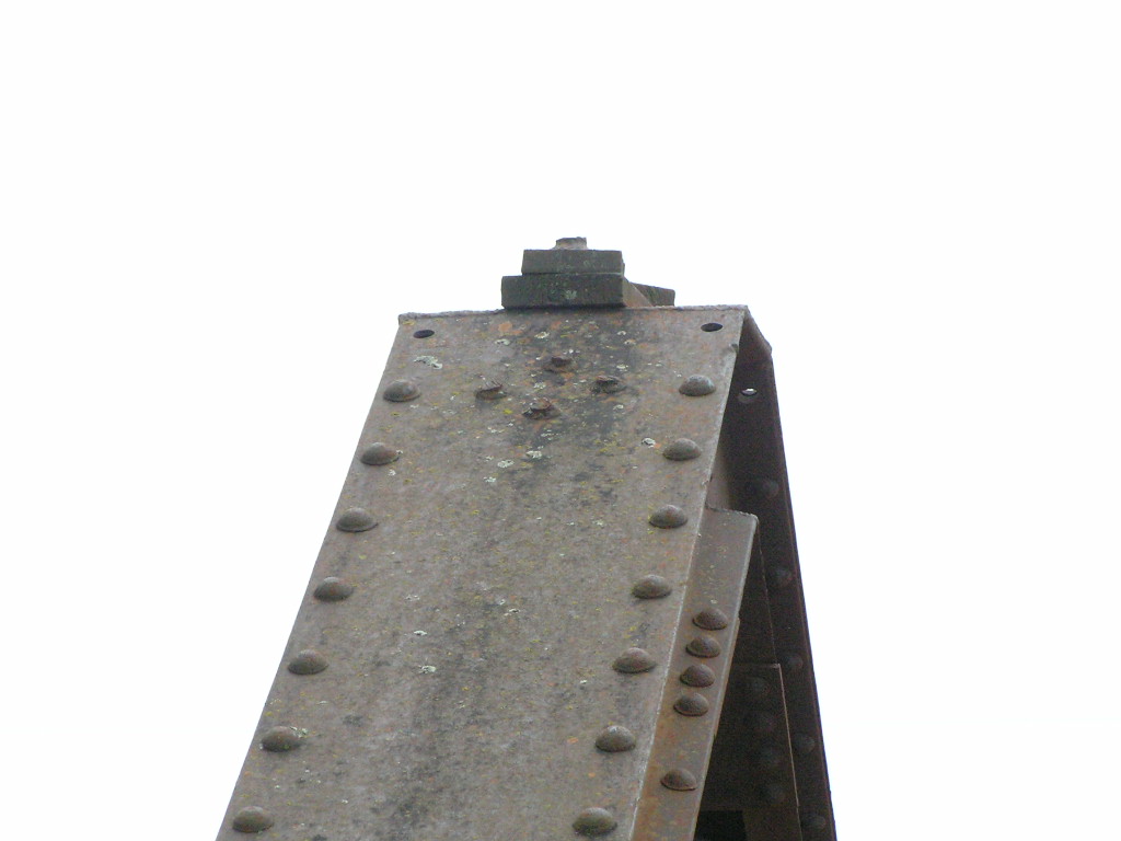Below, a view of the same connection on the opposite side of the bridge. Note the cut rivets.