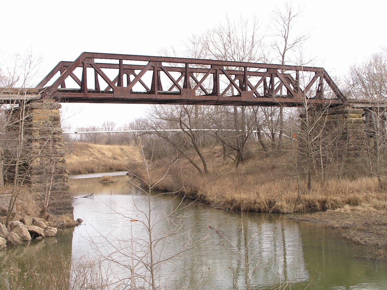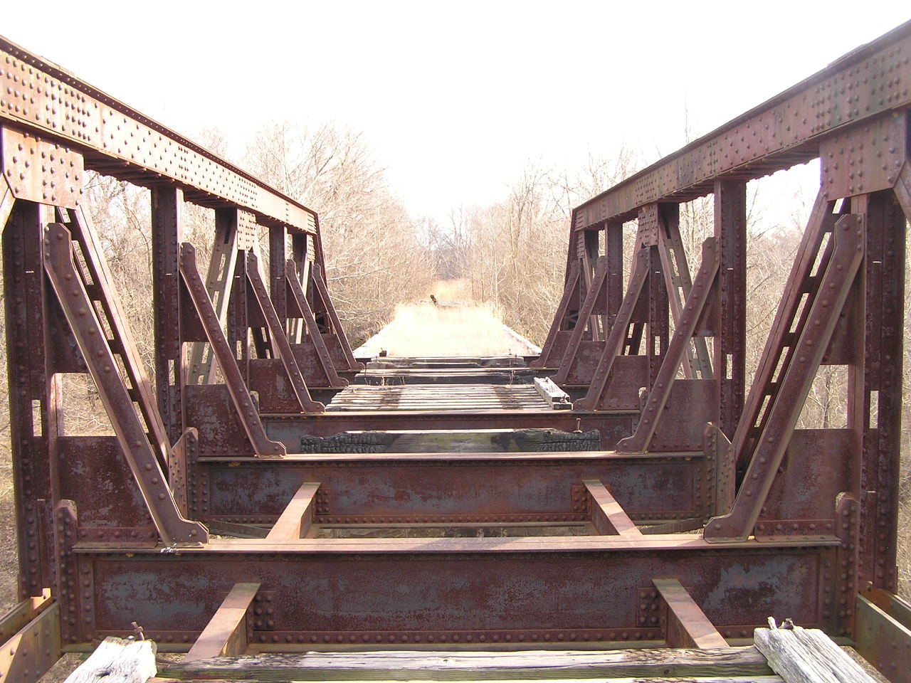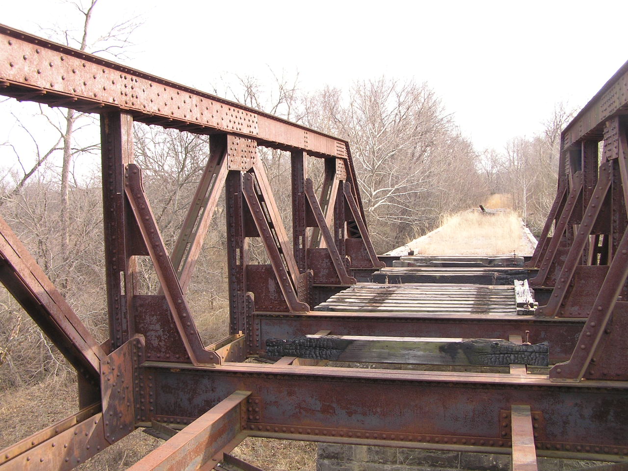 Above, and below, deck views of the massively built pony truss.