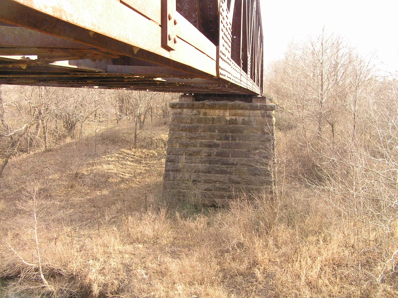 Below, a view along the lower chord to the massive stone pier.
