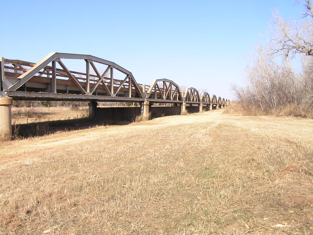 Above, a view of the span that actually crosses the river. This bridge is the last remaining big truss bridge in Northwest Oklahoma.