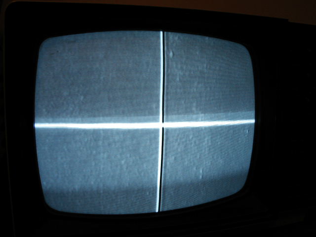 Like I said, the 1076 is a powerful tool for TV servicing. One thing it can do, which I shall display here, is the ability to generate test patterns and RF frequencies. The photo below shows the 1076 connected to a Black-and-white TV set thru its own RF generator. The scope, also by B&K, is connected to the 1076's video output.