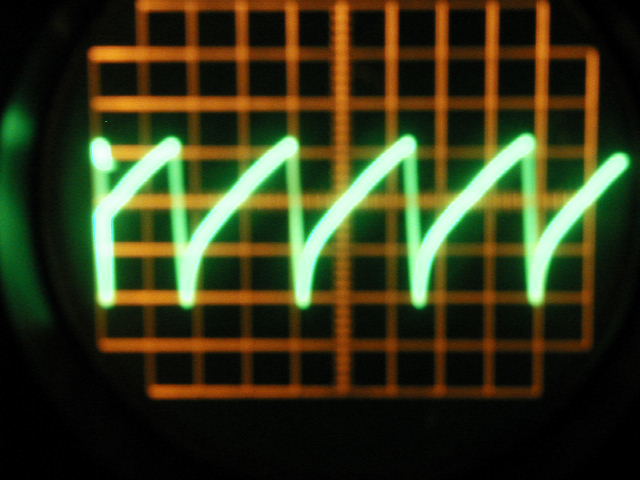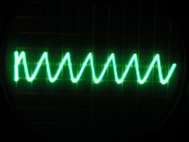 Above, a square wave. This signal was generated by a multivibrator circuit inside the scope for calibration.