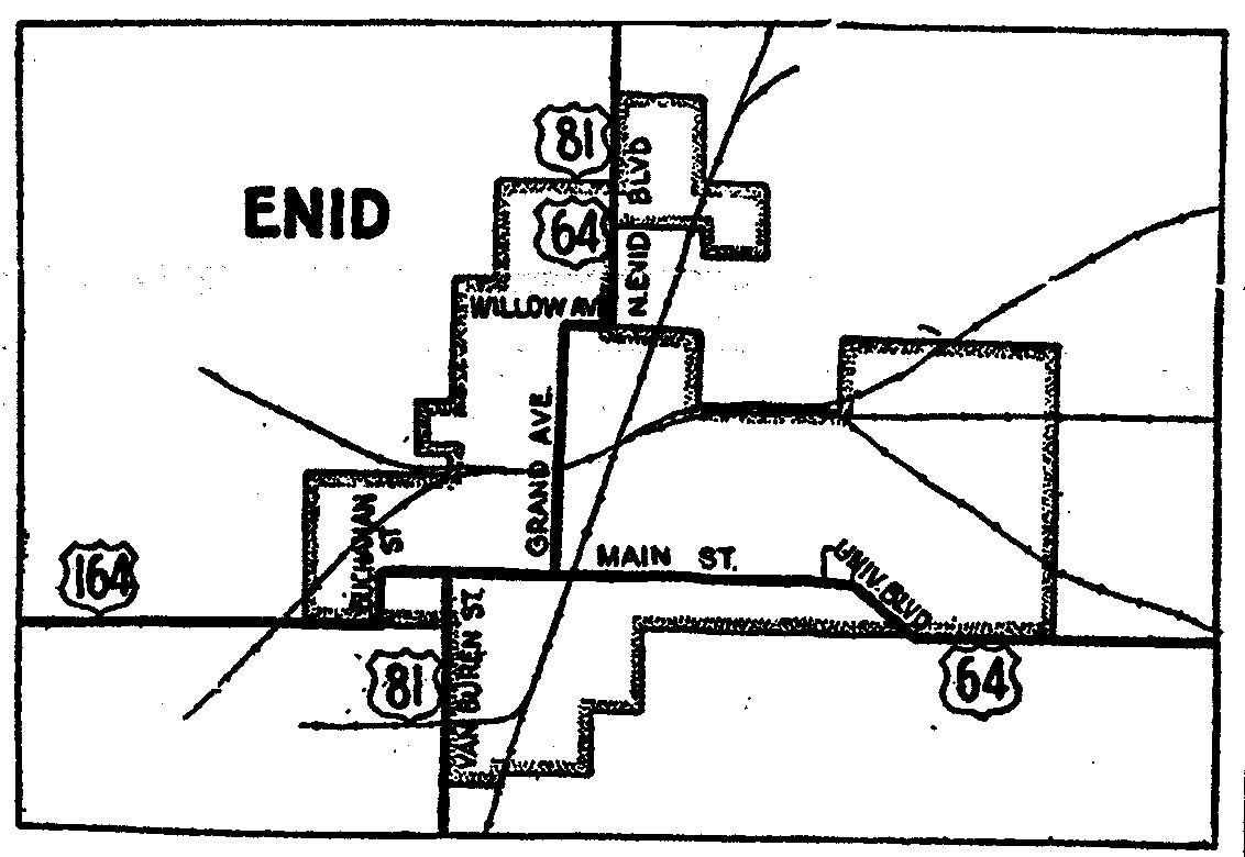 Enid, in 1930. | US 64, US 81, and US 164. |