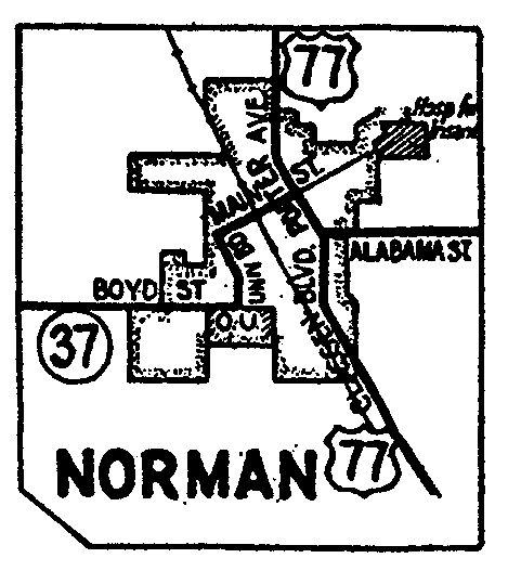 "The accompanying plats show the marked routes of the State and U.S. Highways thru some of the larger towns."-Official Map of the State Highways of Oklahoma. July 1, 1930.