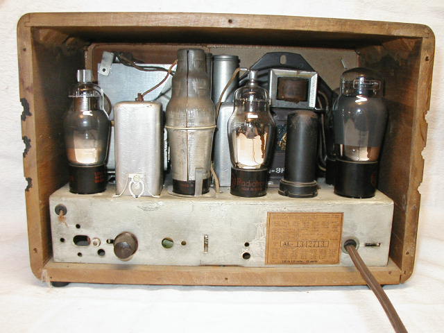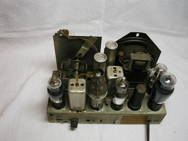 To date, this is my oldest radio, and my only one to use 5, 6,7 pin and octal tubes. Note the home-made dial pointer. This, much like the lack of a dial cover, is temporary.