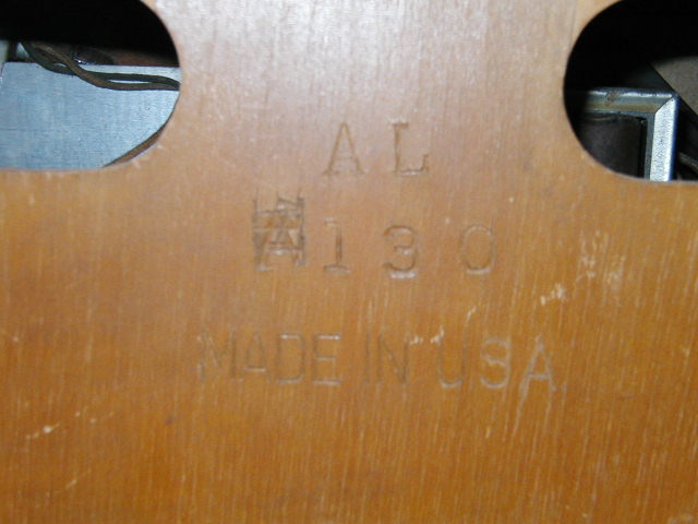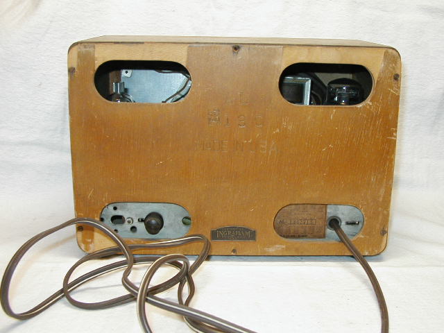 Below is the back of the radio. I have already done an electronic restoration of the set. I was able to find an old brown polarized appliance cord that would look good with the radio. You can see the knob for the bandswitch to the left.