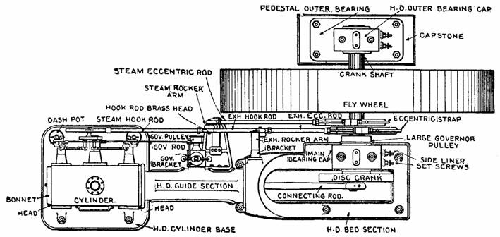 Fig. 850.- Corliss Engine construction; plan with names of parts.
