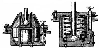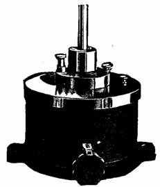 Figs. 929 and 930.—Rice and Sargent dash pots. Fig. 929, vacuum type; fig. 930, spring type. According to the makers, vacuum pots are preferably limited to speeds of 125 revolutions per minute, and spring pots to 250 revolutions. Their strengths on normal lifts are the same. On light loads where a vacuum pot of the best design may not close properly, the spring pot will give results equally good as with a heavier load. The dash pots of either type are placed with their top flush with the sole plate, and no piping connections are necessary. Control valves with easily accessible handles are provided for adjustment. The air is confined within the passages of the pot and so gives practically soundless operation.