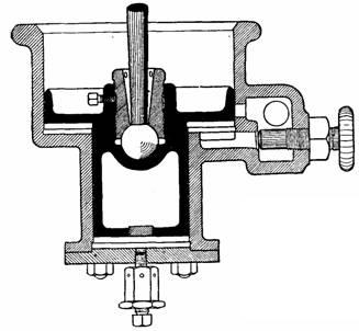 Fig. 932.—The Murray-Corliss separate compression dash pot. The compression cylinder has a port in the side leading directly to the atmosphere, and allowing quick ingress of air when uncovered by the piston. Compression takes place in the descent of the piston after it has covered this port, and is regulated by the screw valve.