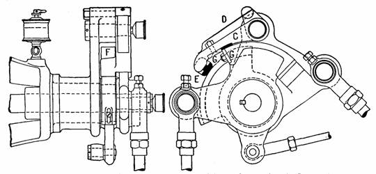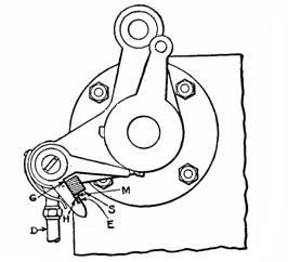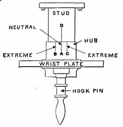 Fig. 957.—Reference marks on the wrist plate and stud for valve setting. When D, resisters with A, the wrist plate is in its neutral position; B and C, indicate the extreme positions.