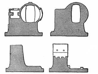 Figs. 865 to 868.—Corliss valves. They rotate back and forth over circular seats, and are guided by cylindrical ends, whose circumferences are partly depressed, as at A, leaving a space B which allows the valve to raise from its seat and relieve the cylinder of any excessive pressure, as in priming.